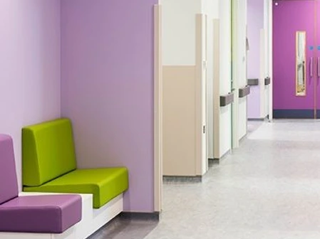 Hygienic, slip-resistant flooring and wall systems designed for hospitals, clinics, and care facilities, supporting infection control and patient safety.